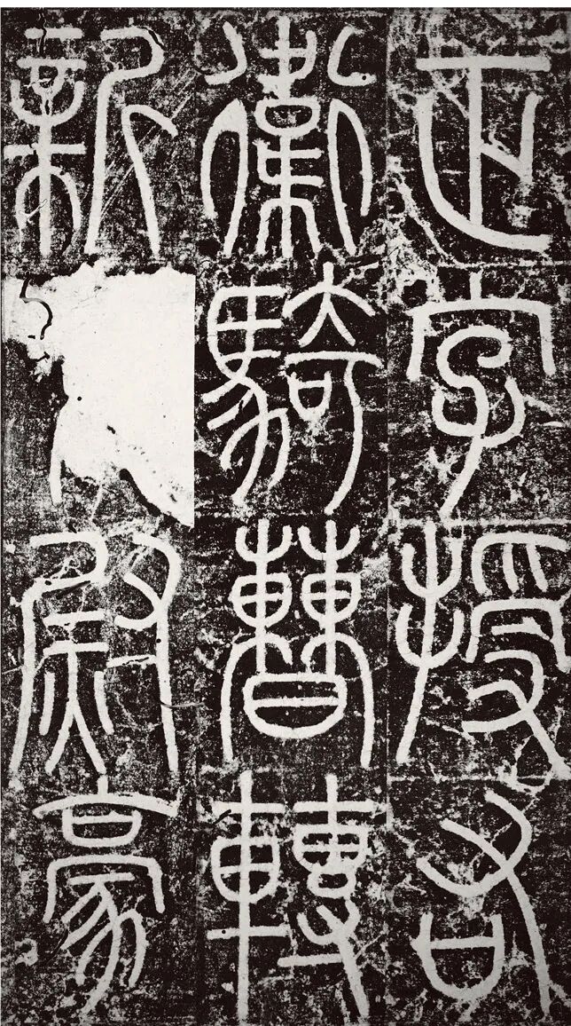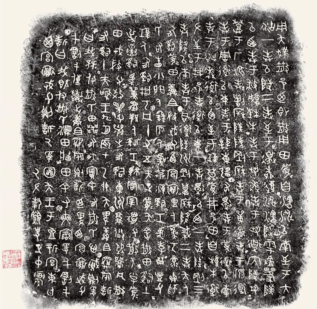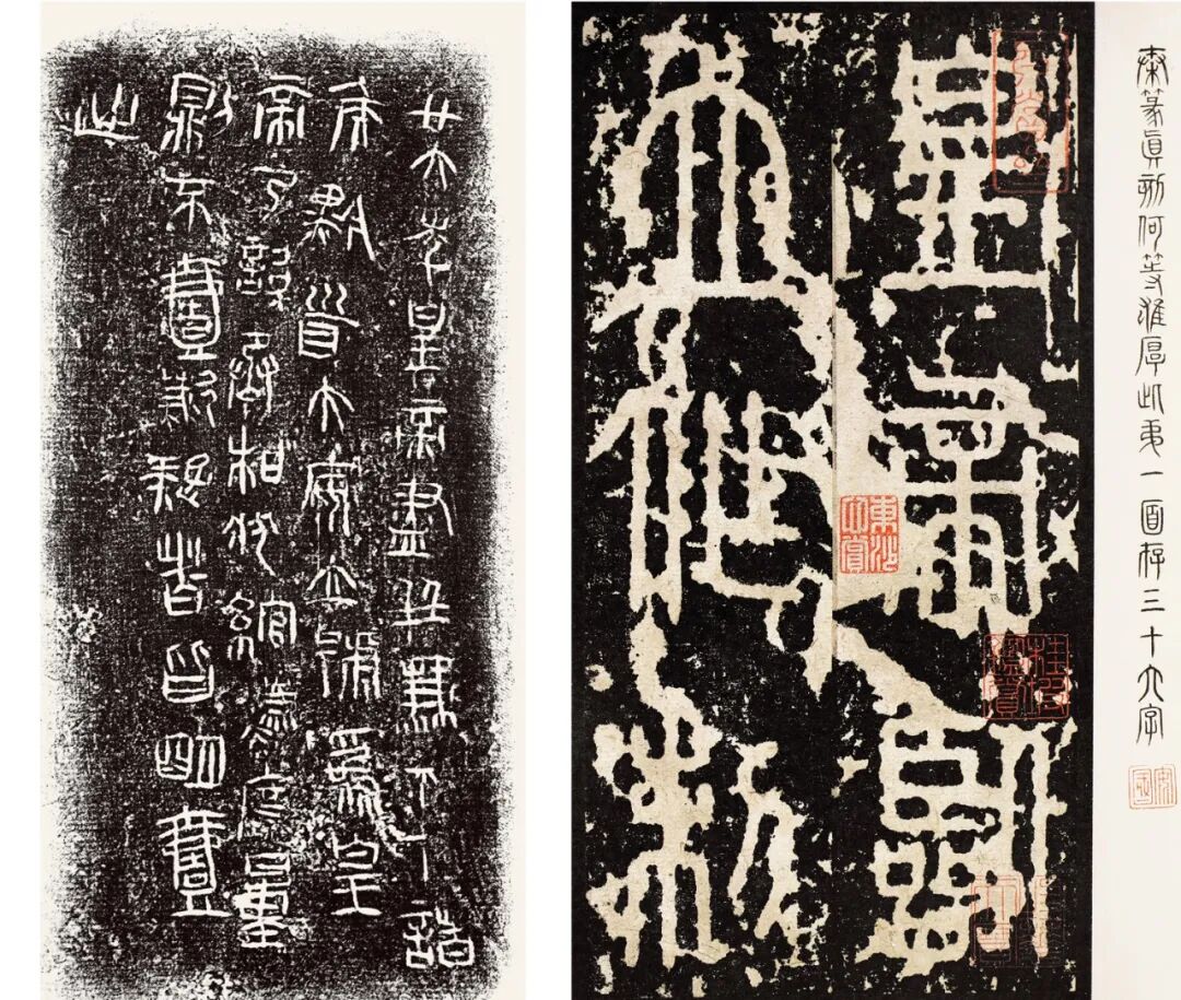 战国秦时期《秦公簋》盖内铭文图(左)《石鼓文》宋拓本现藏日本东京三井纪念美术馆(右)