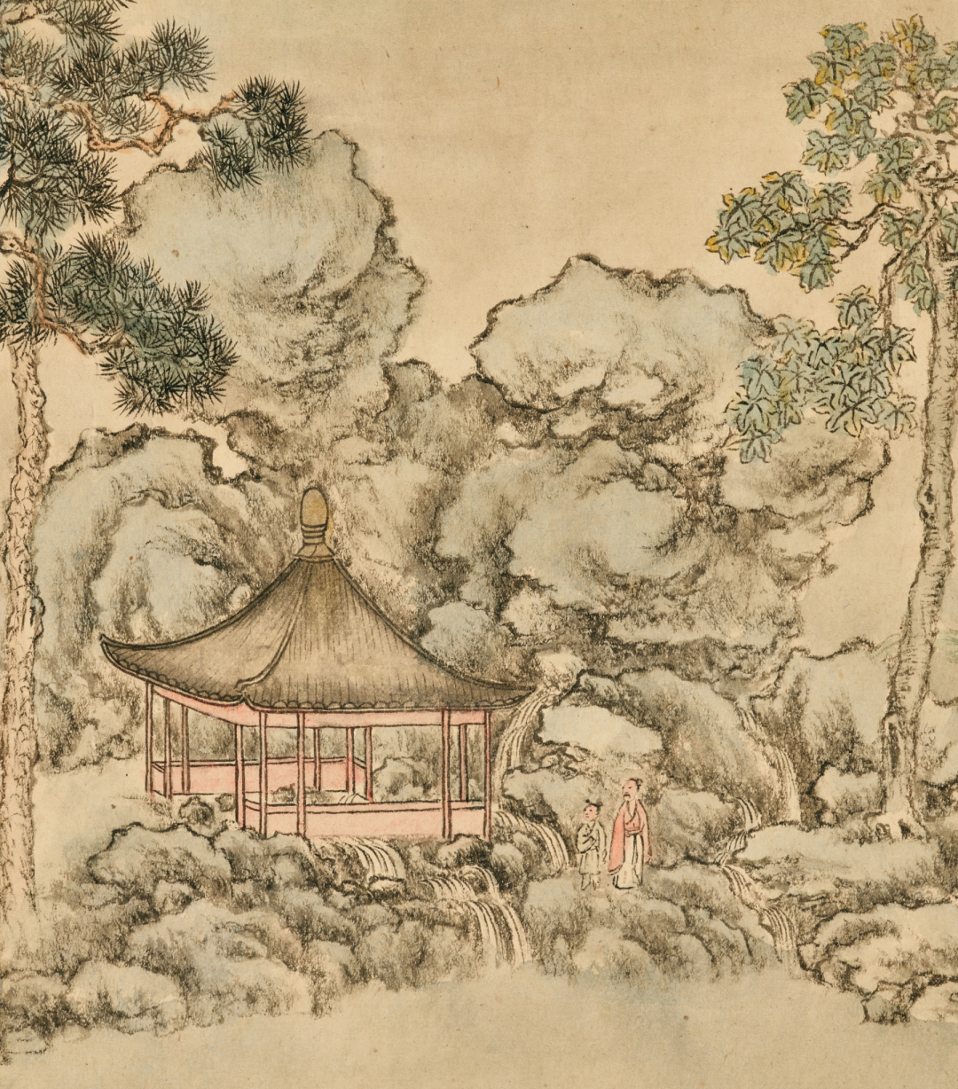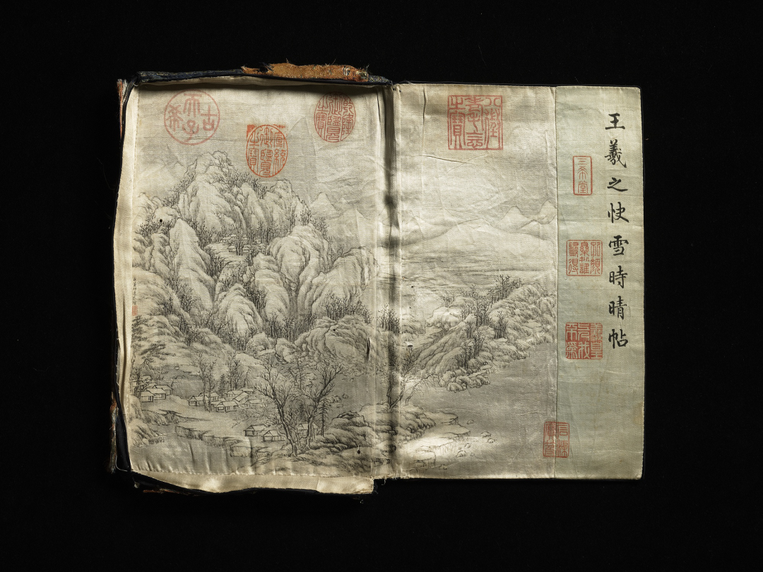董邦达,《快雪时晴帖册》山水部分,水墨绫本,册页套,台北故宫博物院,文物图档编号:K2B000141N000000000PAF