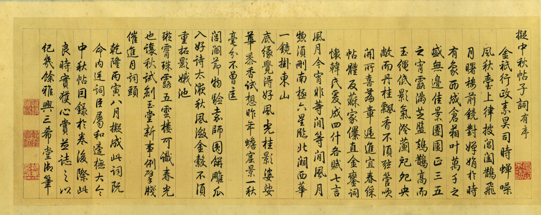 乾隆,《中秋帖》后跋《拟中秋帖子词有序》,水墨纸本,手卷,故宫博物院
