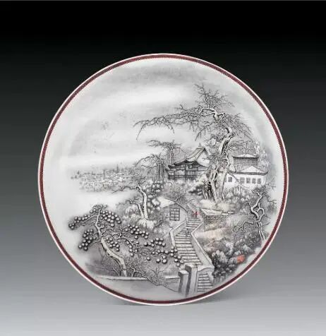 艺术瓷厂美研室 粉彩“雪景人物”圆盘