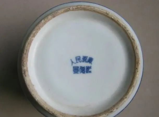 新中国建立后,景德镇的制瓷业很快得到恢复,这一时期瓷器底款特点是新旧并存。部分瓷器沿用民国时期底款如“江西徐生记出品”、“江西吉昌社出品”等等。还有部分瓷器使用公司(瓷厂)款。如1948年8月,景德镇第一家公营瓷厂--建国瓷业公司成立,初期使用“江西建国瓷业公司”底款,1950年改为建国瓷厂,随后使用“景市建国瓷厂出品”底款。1956年以后使用“建国瓷厂江西出品”底款。建国后不久,有些瓷器底款出现“景德镇制”篆书方款。至于由谁设计,由谁最先使用,目前尚无法确定。