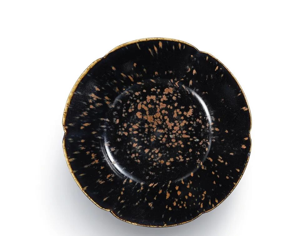 此盘六瓣葵口造形,类同宋代漆盘,口沿削切圆润小角,葵瓣间隐现浅沟,纤雅利落(漆器例见图一:坂本五郎旧藏漆盘,2013年10月8日售于香港苏富比,编号141)。汝州张公巷窑址出土近似之深棱六瓣葵式瓷盘,此窑所造之器近类汝瓷,但几无传世之例