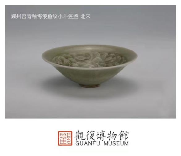 北宋 耀州窑青釉海浪鱼纹小斗笠盏