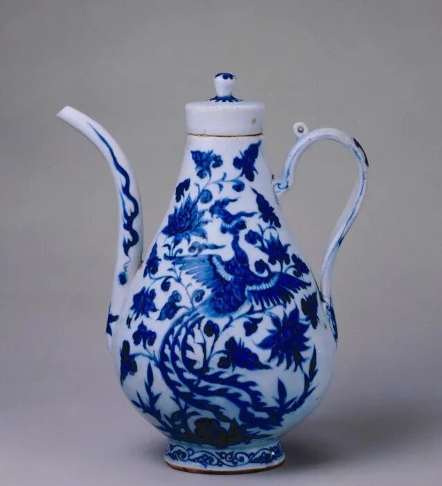 青花竹石缠枝莲双凤纹带盖执壶 北京故宫博物院藏
