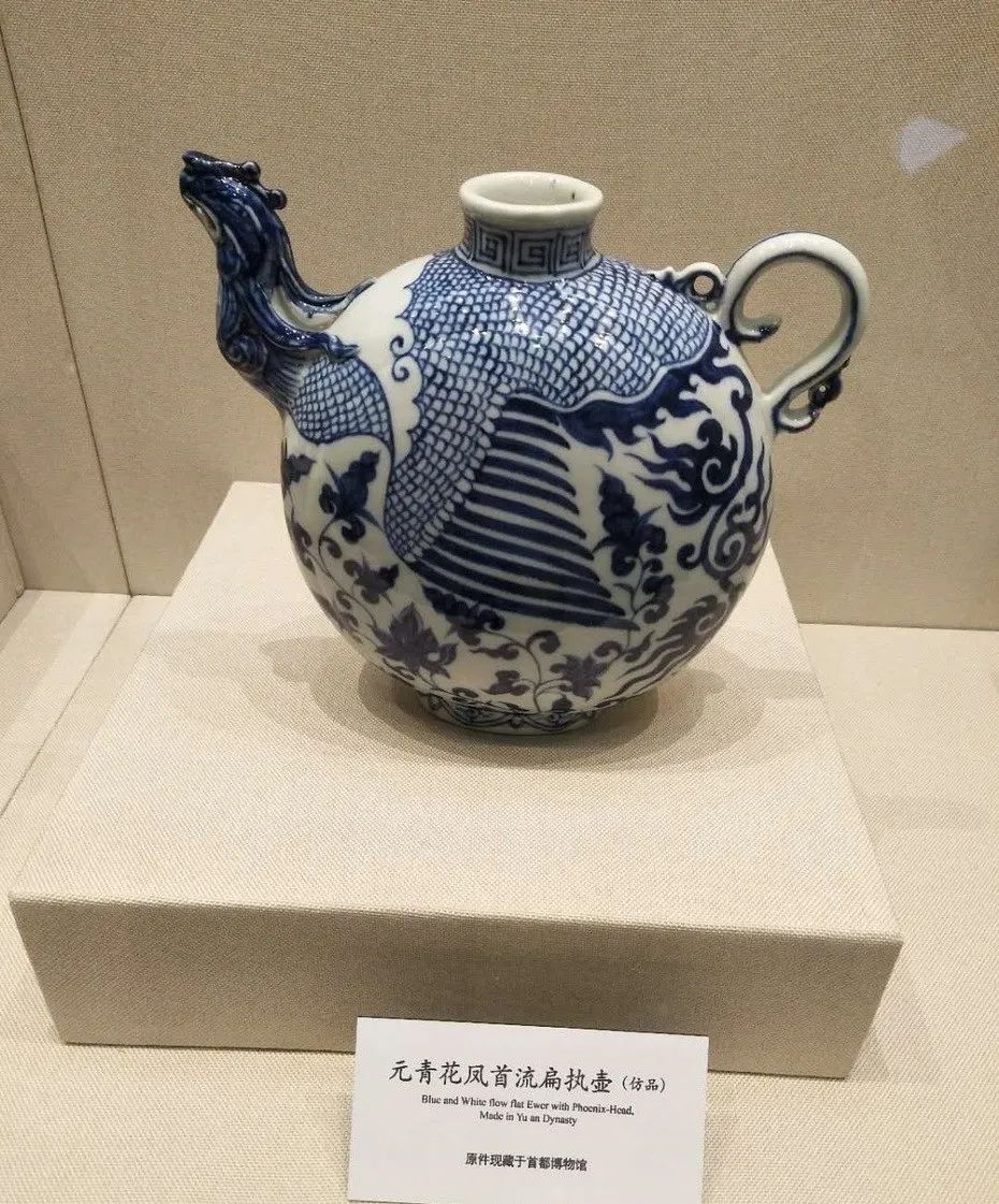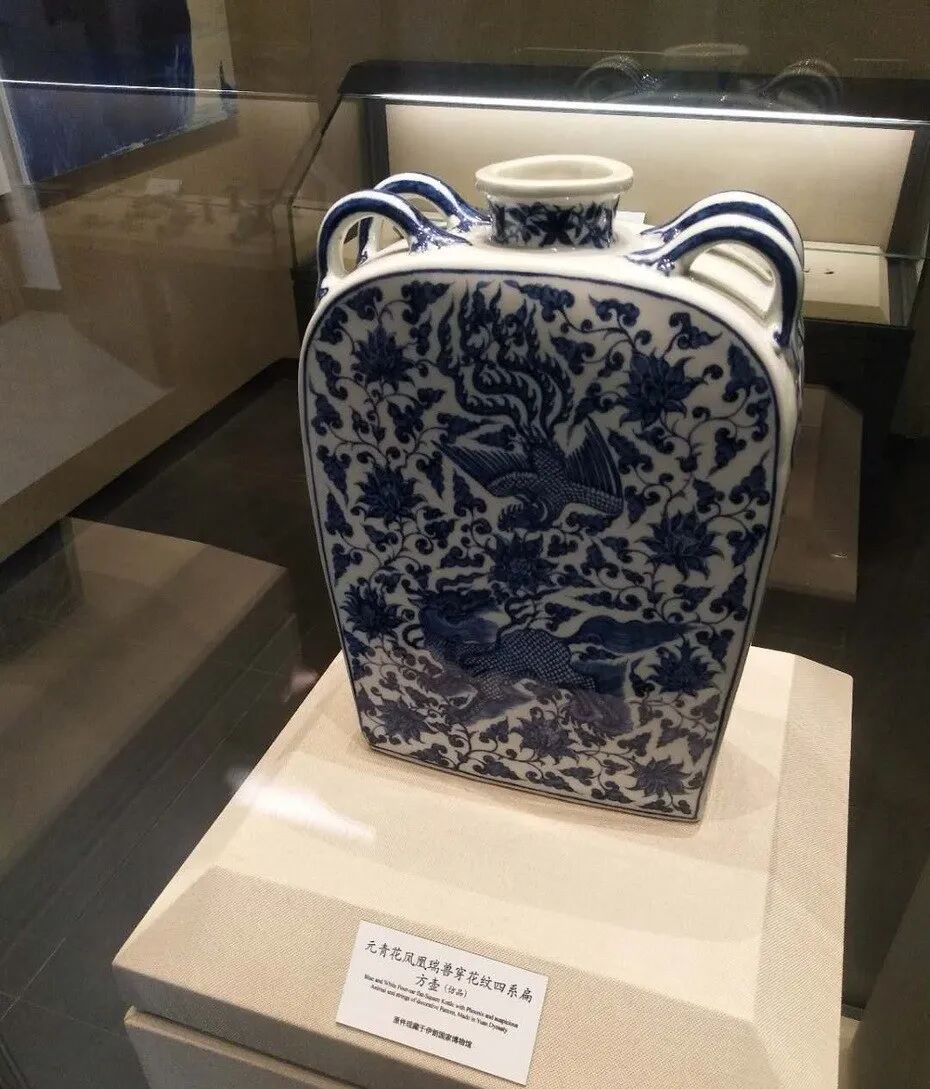元青花凤凰瑞兽穿花纹四系扁方壶 高安博物馆藏