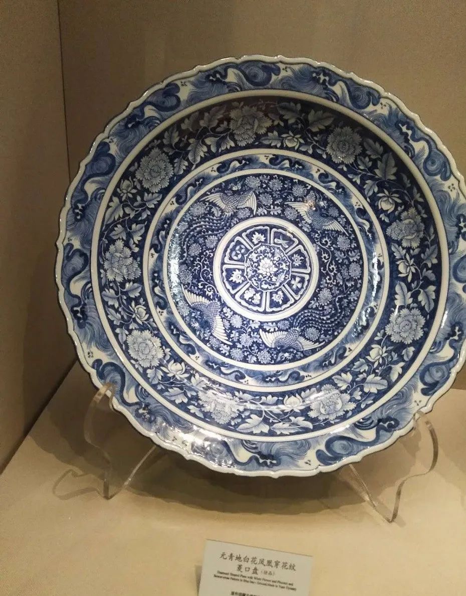 元青地白花凤凰穿花纹菱口盘 高安博物馆藏