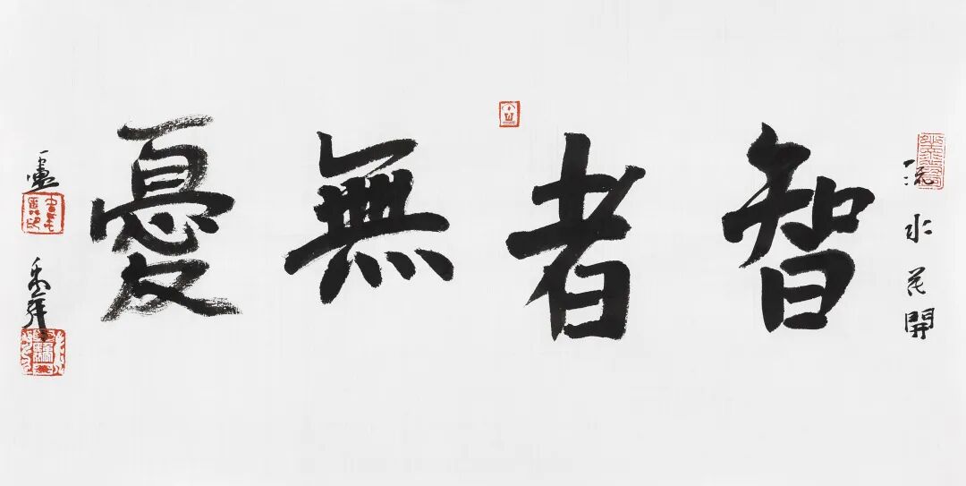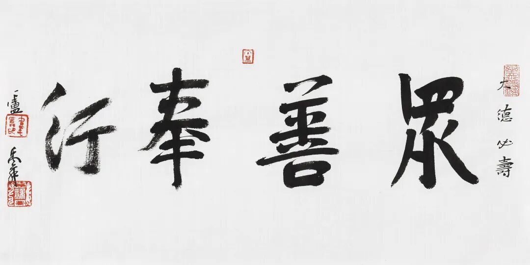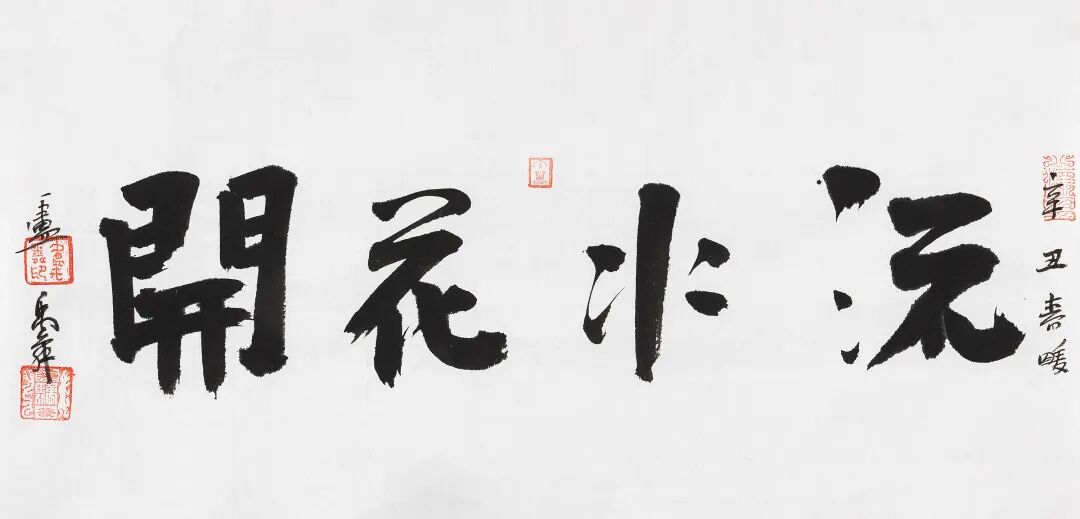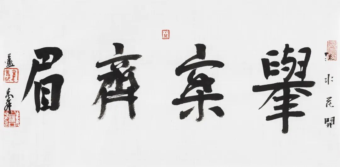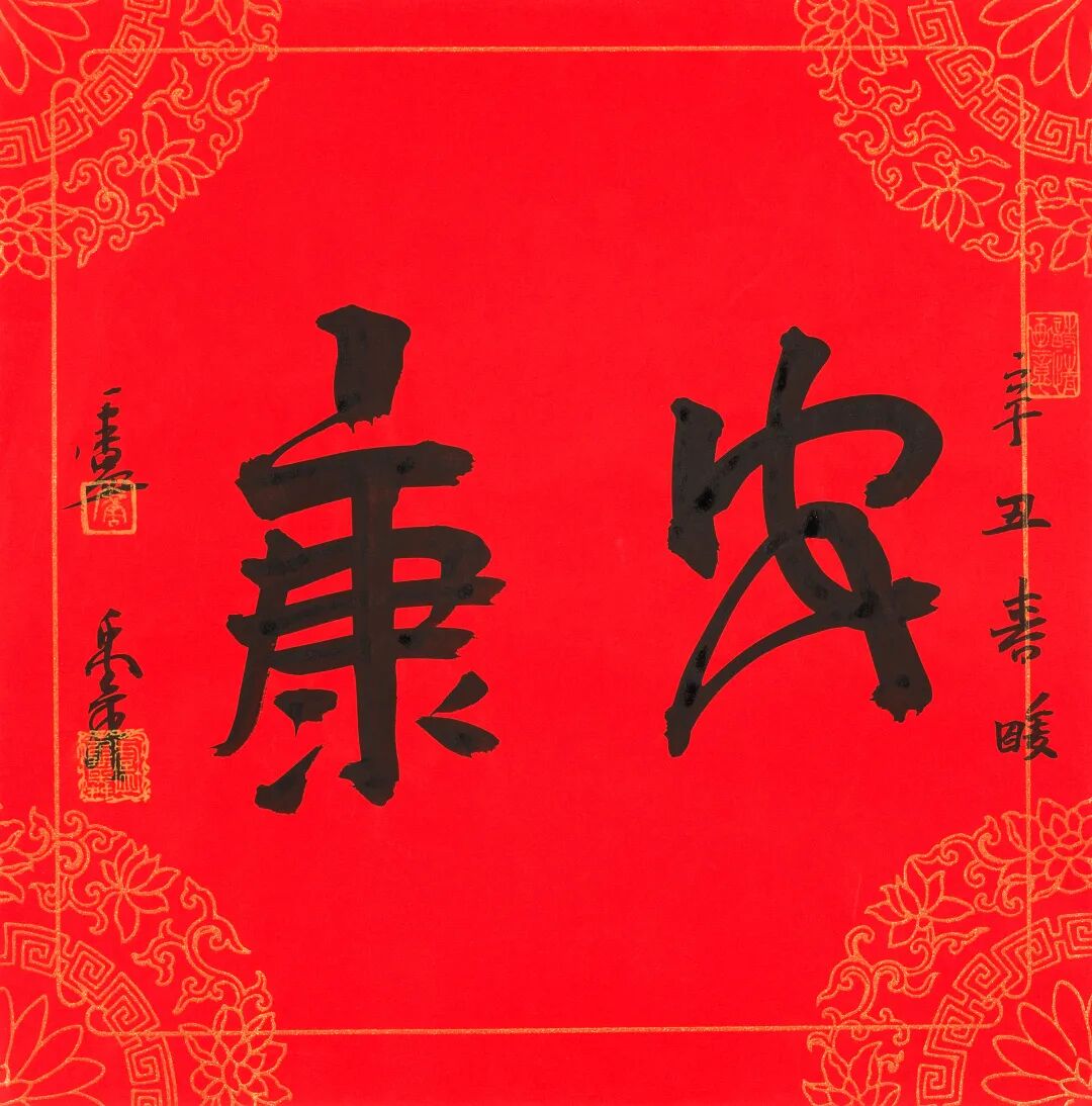 在还有科举考试的私塾时代,儿童开蒙期的学子们只有两门功课:一是书法课,另一是文化课。其中,书法课是重中之重的课程,因为科举考试时书法过不了关,内容再好的试卷也是垃圾。光绪三十二年(1905年)废科举,西洋钢笔流行开来,写字方便了,但书法由此衰微。不过文化只生不灭。衰微的书法远离了记录思想、语言的功用轨道,在审美的通道中却借助文化界有识之士大力推动而大放异彩。卢禹舜先生的书法,可以说是这“大放异彩”兑入中国文化走向当代中兴大潮的奇葩。学书法是需要灵性的,没有灵性可以把字写得端正,但不会使之活泼、生动且有感染力,但书法的“骨子里”的端正,却需要书法家具备“童子功”的功力。古人说三十不学艺,对书法而言,三十岁以后的人再学书法,自然可以把字写得较比以前端正,但面对洒洒脱脱或神采飞扬的字态中的“气骨神采”之正,就只能望洋兴叹了。卢禹舜先生的书法,写得如上林苑的春花,似袅袅东风中有崇光凸见。雍容、华美而清气袭人。他深谙书法“藏头护尾”之要妙,也颇懂书法的“歪中求正”之美。重要的是,作为画家,他的书法有画面感。不仅字与字、点画与点画之间能互相照应,而且能在书写时,进入特定的情感境界,且在境界中把握书法的意象,并于此中从容稳健把笔运翰,不仅能够令笔法蕴涵微妙变化,而且还能使通篇作品墨法华滋,神采动人。故其书法,干裂秋风、润含春雨,充满一片生机。大体说来,卢禹舜先生的书法,有三方面可圈可点:第一,有文脉对接,他的书法近金铜造像刻铭体,故近北碑而更加自由洒脱;第二,有个性创造,他的书法体势恣奇,但内含筋骨,观之令人顿感一片生机;第三,他的书法有童子功的基础,这是后天补不足的天纵之资,再加上他书写书法时,往往能挪移画家那灵动、通透而活跃的聪明性灵入于书法,所以他的书法,笔法沉着稳健、神完气足之余,另有一种笔酣墨饱的韵味能迅速撞入欣赏者的心头。总之,卢禹舜先生的书法,无心插柳,是不期然而大成的。这是在童子功的基础上,在画画之后的心情、心态极佳的情况下,因几乎每天都会在画面上汩汩滔滔提款写字,所以日积月累,也就如苏轼《文说》所说:“蓄积既久,势不可遏”,笔下即可“如万斛泉源,不择地滔滔汩汩而出”。在这个意义上,可以说卢禹舜的书法,是当代画家书法之中的上乘之作,能够给我们充沛的美感,也能够给我们无尽的启迪。卢禹舜 行书“安康”