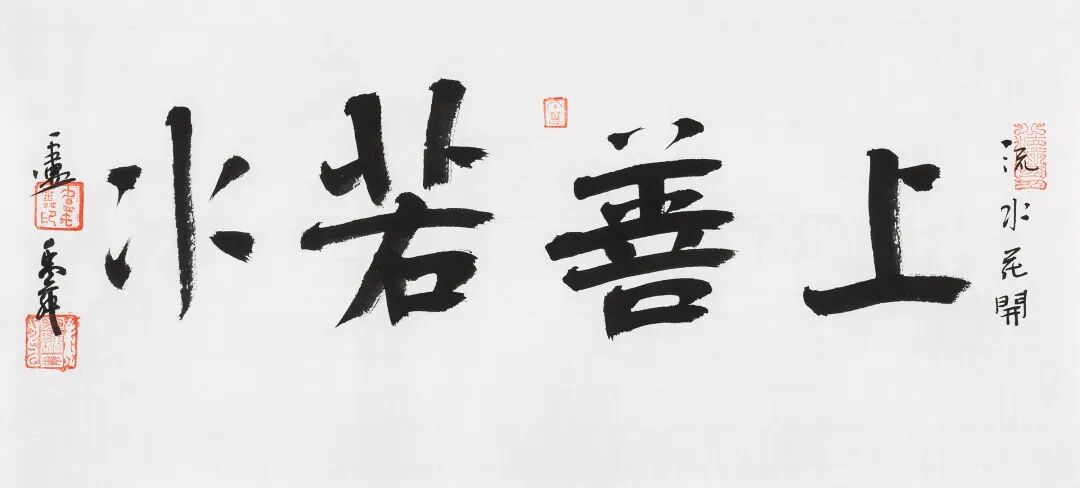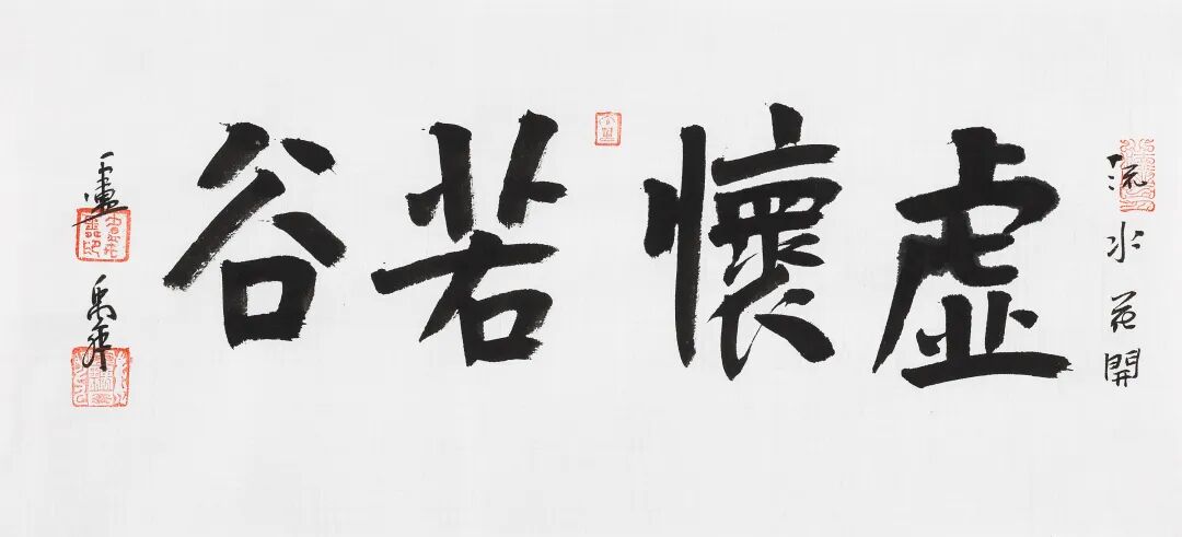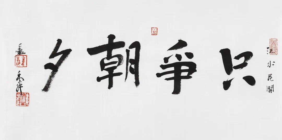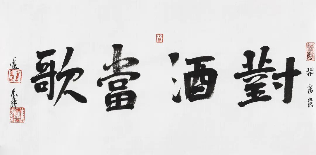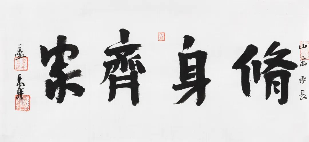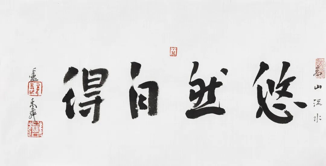 在还有科举考试的私塾时代,儿童开蒙期的学子们只有两门功课:一是书法课,另一是文化课。其中,书法课是重中之重的课程,因为科举考试时书法过不了关,内容再好的试卷也是垃圾。光绪三十二年(1905年)废科举,西洋钢笔流行开来,写字方便了,但书法由此衰微。不过文化只生不灭。衰微的书法远离了记录思想、语言的功用轨道,在审美的通道中却借助文化界有识之士大力推动而大放异彩。卢禹舜先生的书法,可以说是这“大放异彩”兑入中国文化走向当代中兴大潮的奇葩。学书法是需要灵性的,没有灵性可以把字写得端正,但不会使之活泼、生动且有感染力,但书法的“骨子里”的端正,却需要书法家具备“童子功”的功力。古人说三十不学艺,对书法而言,三十岁以后的人再学书法,自然可以把字写得较比以前端正,但面对洒洒脱脱或神采飞扬的字态中的“气骨神采”之正,就只能望洋兴叹了。卢禹舜先生的书法,写得如上林苑的春花,似袅袅东风中有崇光凸见。雍容、华美而清气袭人。他深谙书法“藏头护尾”之要妙,也颇懂书法的“歪中求正”之美。重要的是,作为画家,他的书法有画面感。不仅字与字、点画与点画之间能互相照应,而且能在书写时,进入特定的情感境界,且在境界中把握书法的意象,并于此中从容稳健把笔运翰,不仅能够令笔法蕴涵微妙变化,而且还能使通篇作品墨法华滋,神采动人。故其书法,干裂秋风、润含春雨,充满一片生机。大体说来,卢禹舜先生的书法,有三方面可圈可点:第一,有文脉对接,他的书法近金铜造像刻铭体,故近北碑而更加自由洒脱;第二,有个性创造,他的书法体势恣奇,但内含筋骨,观之令人顿感一片生机;第三,他的书法有童子功的基础,这是后天补不足的天纵之资,再加上他书写书法时,往往能挪移画家那灵动、通透而活跃的聪明性灵入于书法,所以他的书法,笔法沉着稳健、神完气足之余,另有一种笔酣墨饱的韵味能迅速撞入欣赏者的心头。总之,卢禹舜先生的书法,无心插柳,是不期然而大成的。这是在童子功的基础上,在画画之后的心情、心态极佳的情况下,因几乎每天都会在画面上汩汩滔滔提款写字,所以日积月累,也就如苏轼《文说》所说:“蓄积既久,势不可遏”,笔下即可“如万斛泉源,不择地滔滔汩汩而出”。在这个意义上,可以说卢禹舜的书法,是当代画家书法之中的上乘之作,能够给我们充沛的美感,也能够给我们无尽的启迪。卢禹舜 行书“安康”