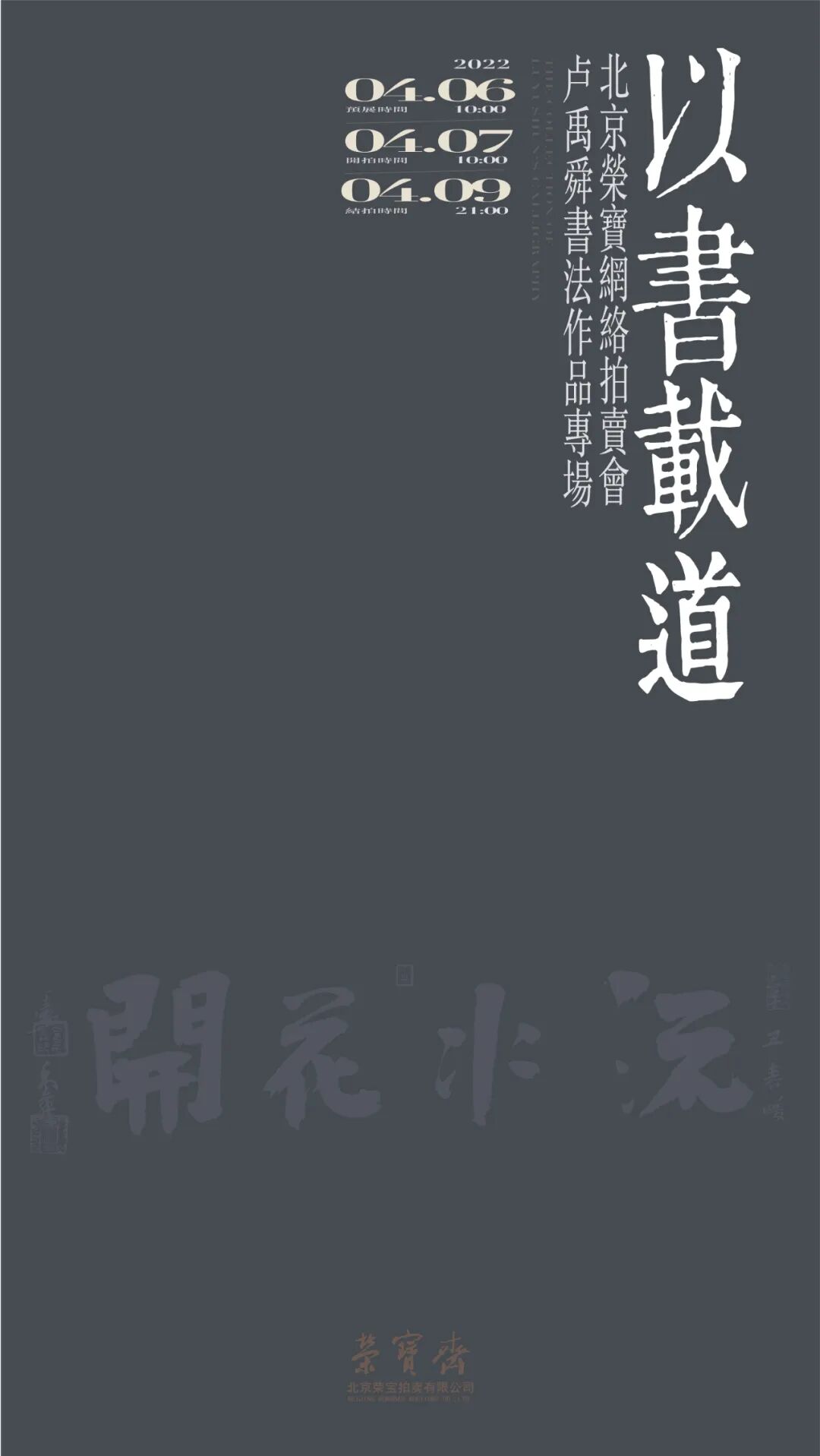 北京荣宝——以书载道·卢禹舜书法作品专场网络拍卖会将于4月6日10:00—4月7日10:00开启线上预展,并于4月7日10:00开拍,4月9日21:00结拍。