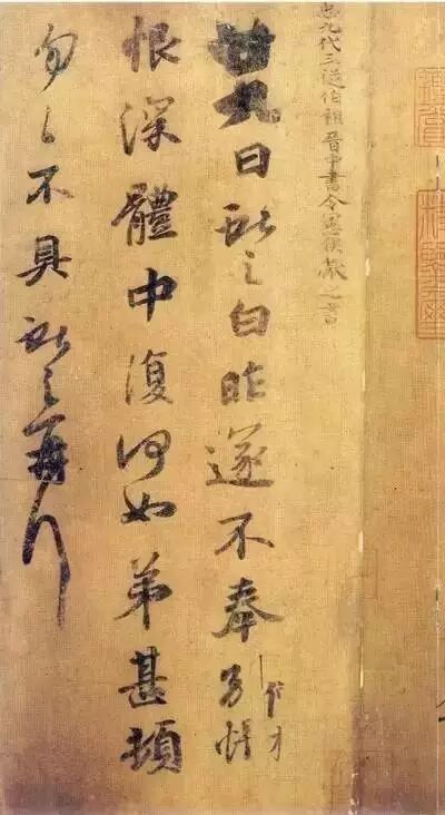 王献之《新妇地黄汤帖》 唐人摹本 纵25.3厘米 横24.0厘米。日本东京台东区书道博物馆藏。