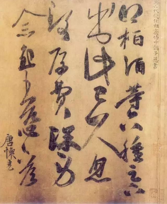 王慈《栢酒帖》。王慈善隶,行书。其草书运笔圆浑,含蕴凝重,然体态十分灵动,纵横姿肆,使人联想到王献之书作风格。