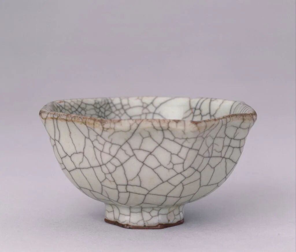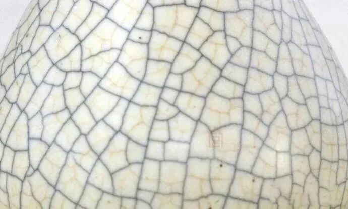“冰裂纹”开片:这是形容在冰晶玉洁的釉面上形成了象冰雪一样清彻的裂纹。