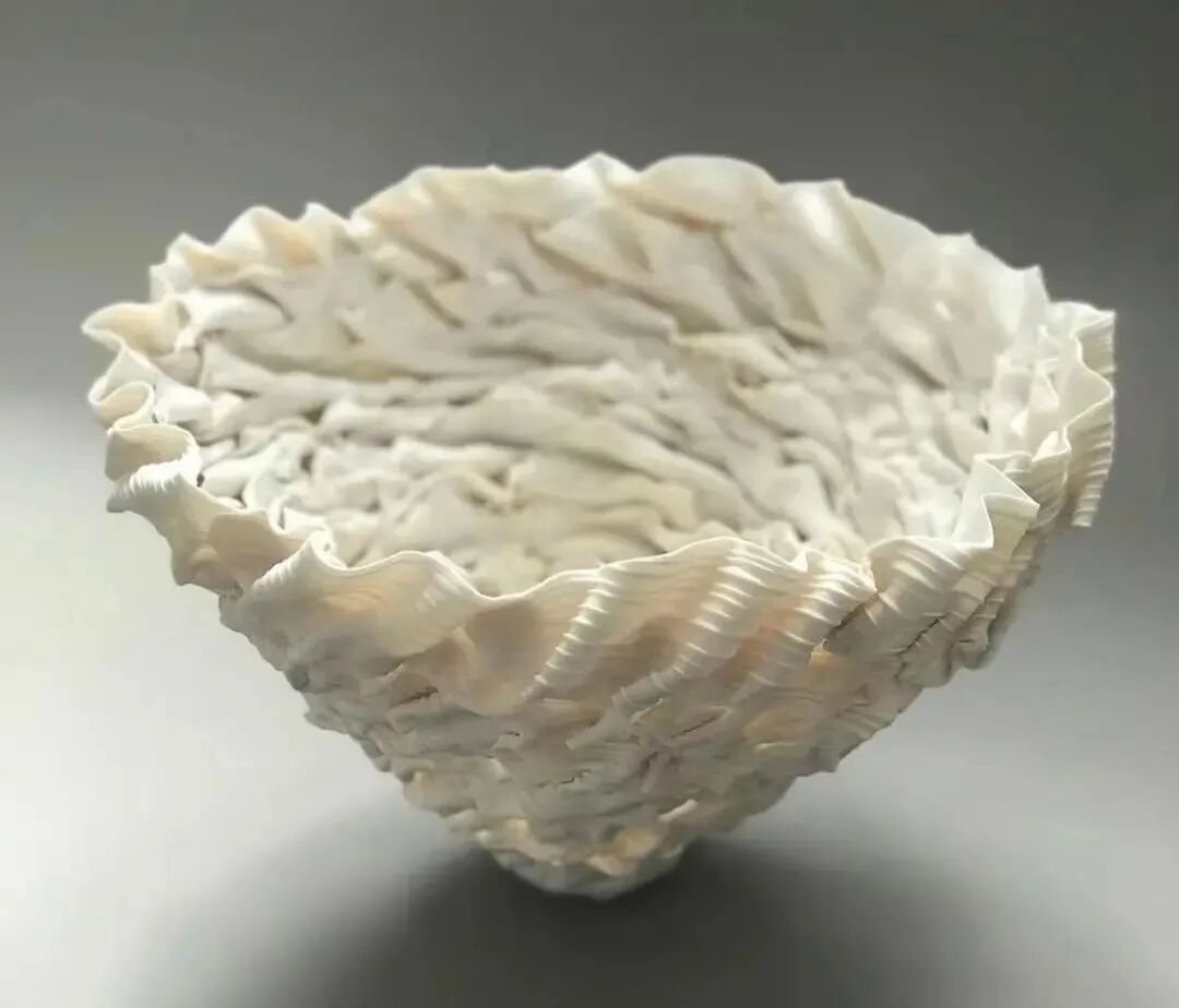 艺术是相互融会贯通的,现代几何抽象艺术在世界美术史中虽然只踞于一种艺术类型的位置,但在现代设计史中却有举足轻重的地位。正因为有了印象派、立体主义到抽象主义等各种艺术发展的脉络,才有了现代陶艺由具象到抽象、由实用到纯粹艺术的转变。现代构成艺术的历史从某一方面来讲,也是陶艺由传统到现代的变迁史。总之,纵观现代构成艺术和陶艺的发展、抽象艺术的概念和语言,随着年代的变迁、社会的进步、科技的发展,逐渐渗透到陶艺的每一块领域。通过摆脱传统,从单纯的抽象走向了多元化、综合性的陶艺制作。不只对泥土自身特性的挖掘,还采用多种现代手法,加强高科技与泥土的对话,创造出土与火、土与自然、土与人的心灵相融合的艺术。其中构成艺术始终是现代陶艺不可逃离和最眷恋的精神土壤。美国陶瓷艺术家 阿琳·谢谢特作品