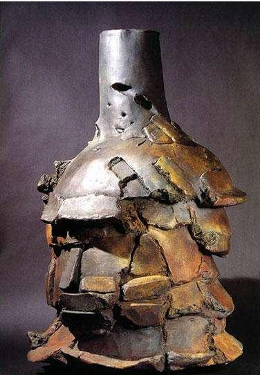 在陶艺界,与之相呼应的是极限主义的崛起。其代表人物是美国的布瑞斯·梅森和西班牙的恩瑞特·梅斯特。极限主义需要一套严格的成型工艺技法的支撑,但这并不妨碍陶艺家们对黏土的抽象表现。理性、简洁是其根本。极限主义陶艺家的作品通常采用一种预先构想的理智方式,根据数学体系、几何图形的一些理念来对烧成品进行艺术创作。而真正将这种风格发展得比较好的是布瑞斯·梅森。他的巨大的“+”字型雕塑,尽显气派和庄重;西班牙的恩瑞特是极限主义的又一典范。他的作品造型结构严谨,棱角的平直转折犹如刀切,是严格意义上的硬边风格,精心设计又使其具有精妙的比例尺度,把构成因素发挥得可谓是淋漓尽致。日本陶瓷艺术家八木一夫 关于云