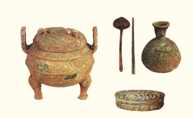 铜香鼎、铜筋瓶、银匙筋、银仿剔犀剑环纹盒