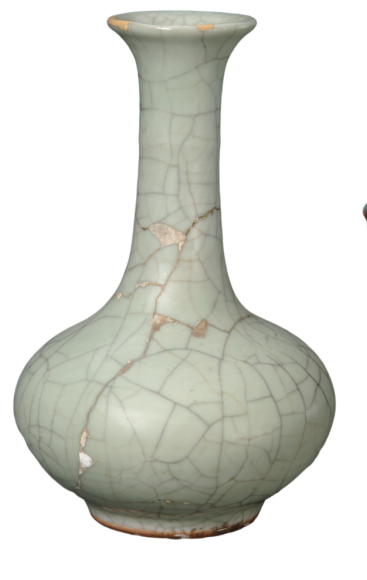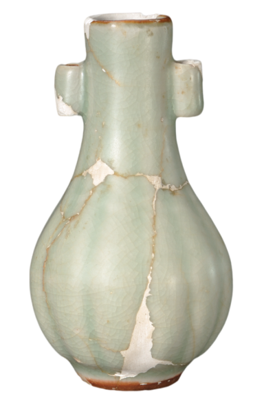 此瓶釉色呈湖绿色,釉面开片似铁线纹,足底露胎作成“铁足”,当属仿宋官窑产品。