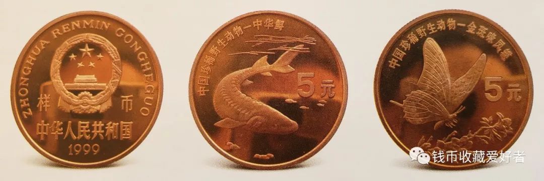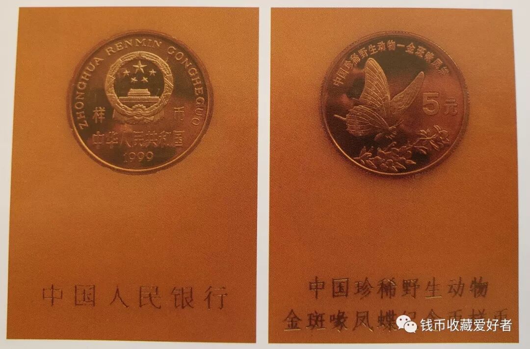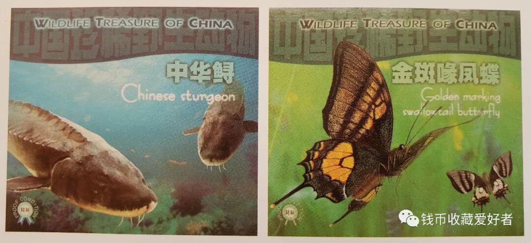 中华鲟、金斑喙凤蝶精制样币产量3000套,精美度5级,参考价40000元。