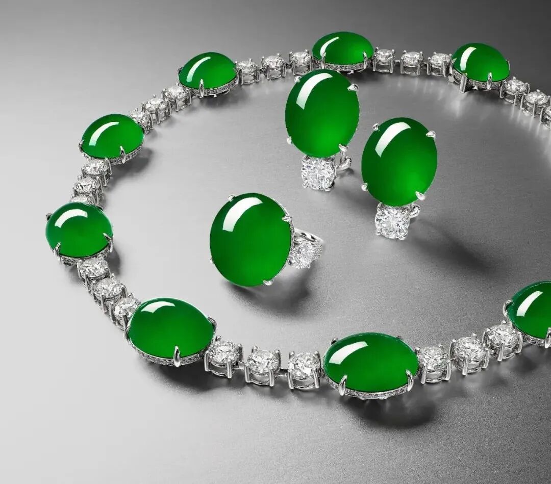 极珍罕及重要 天然「帝王玉」翡翠 配 钻石套装