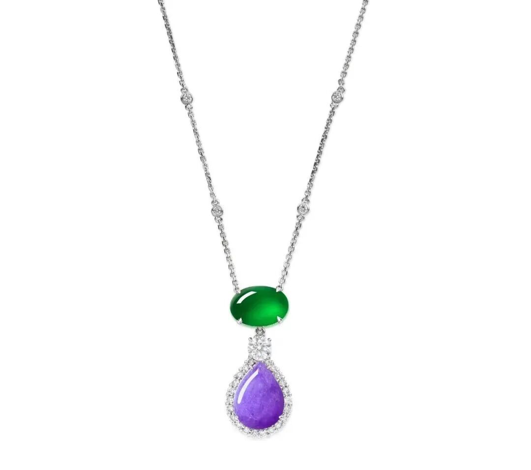 天然翡翠配 紫罗兰翡翠 及 钻石项链