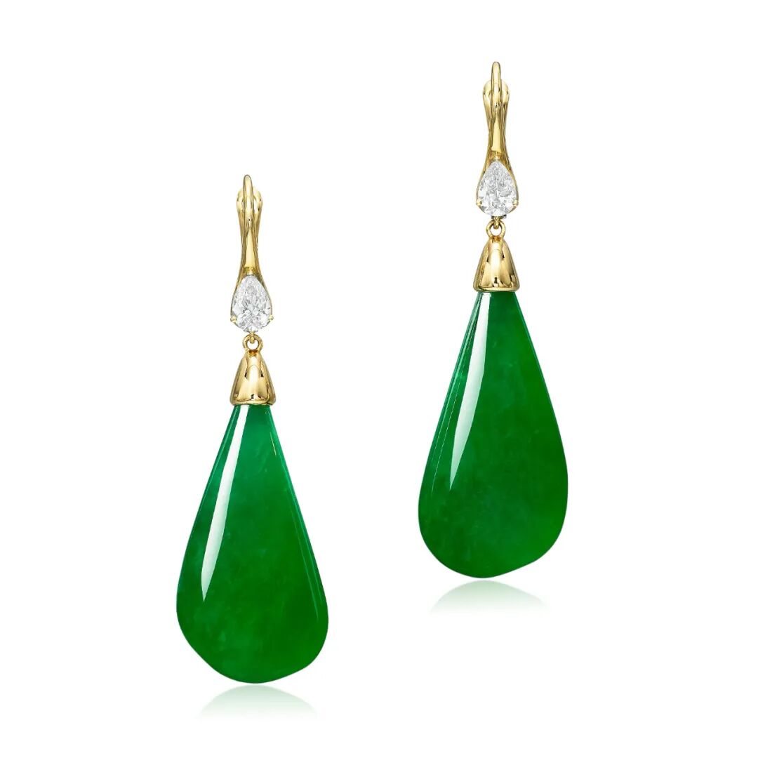 苏富比独占鳌头,率先引入顶级「帝王绿」翡翠首饰,以及每卡拉美元单位价,奠定国际市场新专业标准。今季拍卖呈献多款以顶级「帝王绿」翡翠制成的蛋面翡翠耳环及戒指,不论成色、材质及光泽均为极品。「帝王绿」之称号与国际宝石成色等级相类,如红宝石的「鸽血红」色及蓝宝石的「皇家蓝」色。