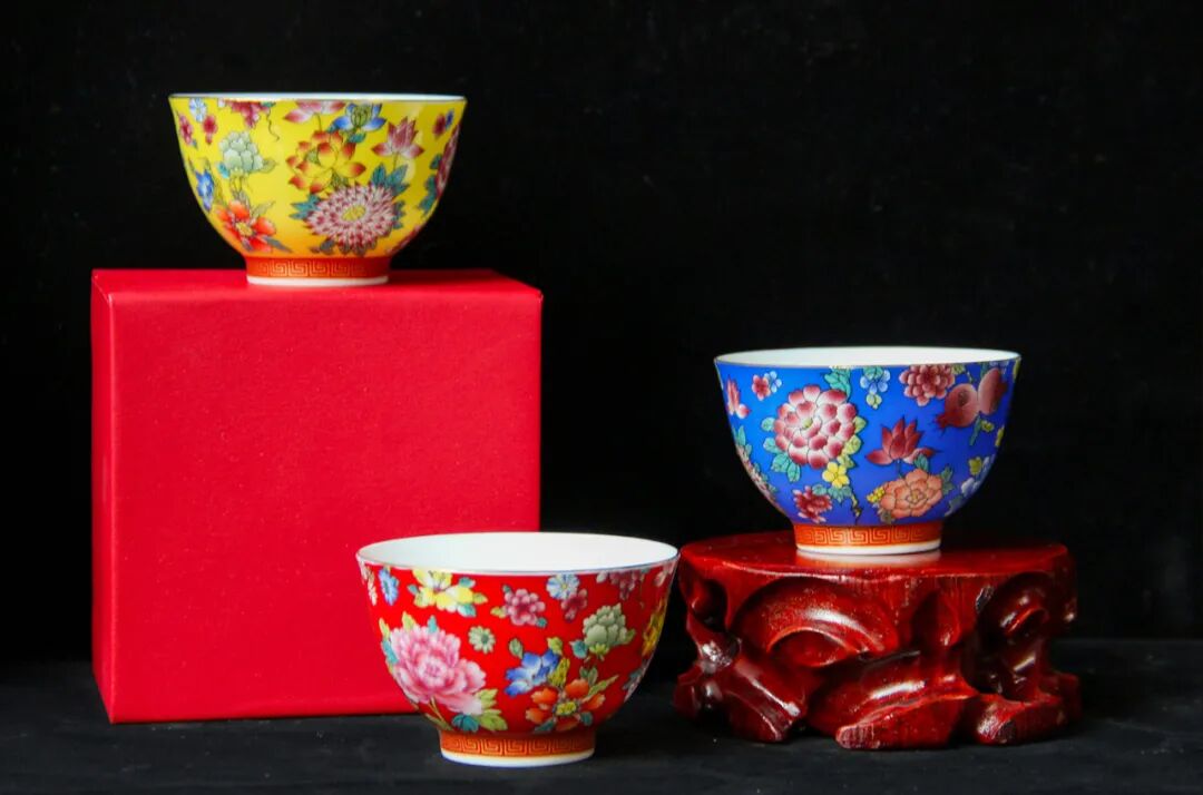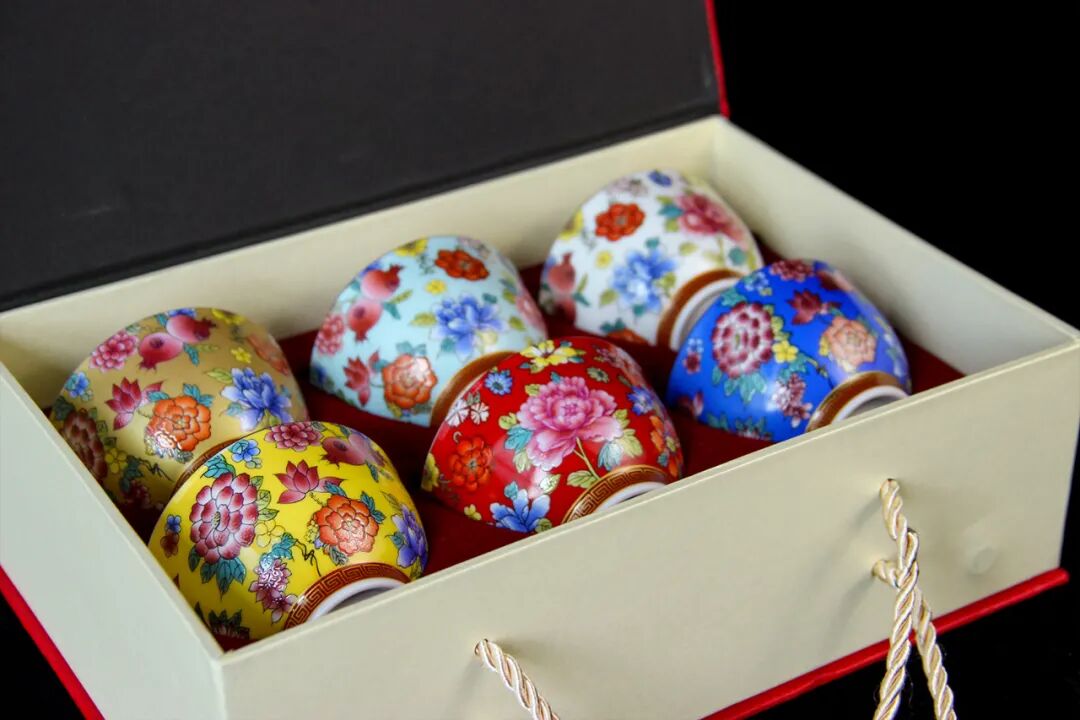 珐琅彩瓷器是专供帝后玩赏的艺术品,宫廷控制极为严格。其制作工序复杂,用料讲究,极度费工,目前仅有40件收藏于故宫博物院,文物珍贵,世人想要一窥珍宝实属不易。得益于现代技术,珐琅彩制作工艺得以还原,这套珐琅彩富贵杯,便是传承古法,由景德镇珐琅彩仿古第一匠人谢华根精心制作,让大众可以近距离感受皇室御用之物的魅力。其选用皇家瓷器上品中的吉祥图样和正统六色,配以繁华富贵的花卉图案,这样一套堪称华丽的富贵杯,配上饮茶这一雅趣之事,妙不可言!这套富贵杯还附带一幅国家一级书法大师王传利的书法作品《帝王书法——御笔五福》,为您的富贵再添一份福气!