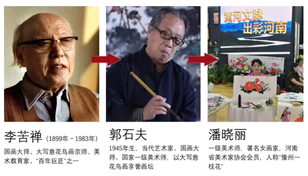 潘晓丽,一级美术师,进修于荣宝斋画院、中国国家画院,师从霍春阳及李苦禅学生郭石夫等诸家,为李苦禅再传弟子。
