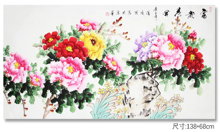 这幅大师巨作,风格独特,画面清新,浓淡相宜,生动的表现了牡丹的娇艳和雍容华贵。挂于家中,花开富贵,幸福相伴。![]()