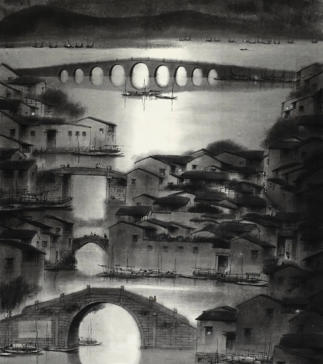 作为首创新一代水墨水乡画的画家,杨明义笔下的水墨江南,早已超过了景色本身的意义,它不但留住了记忆中的那份家乡景致,更承载了传承人文的重要使命。