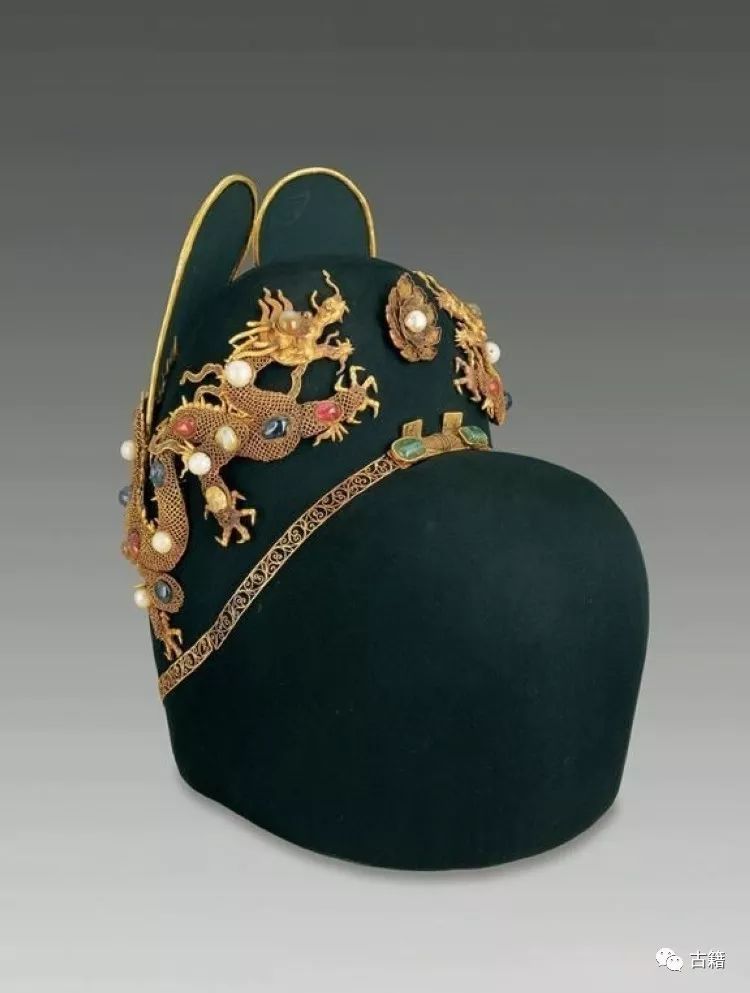 翼善冠用于明代皇帝诸王的常服、吉服、素服中,冠后折角向上,俗称冲天冠,《西游记》:“头戴冲天冠,身着衮龙袍。”前期没什么装饰,后面有两个尖角竖起,有点像兔女郎的头饰(误)。