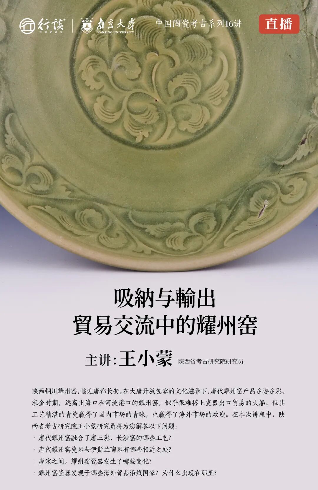 陕西铜川耀州窑,临近唐都长安。在大唐开放包容的文化滋养下,唐代耀州窑产品多姿多彩。宋金时期,远离出海口和河流港口的耀州窑,似乎很难搭上瓷器出口贸易的大船。但其工艺精湛的青瓷赢得了国内市场的青睐,也赢得了海外市场的欢迎。在本次讲座中,陕西省考古研究院王小蒙研究员将为您解答以下问题:
