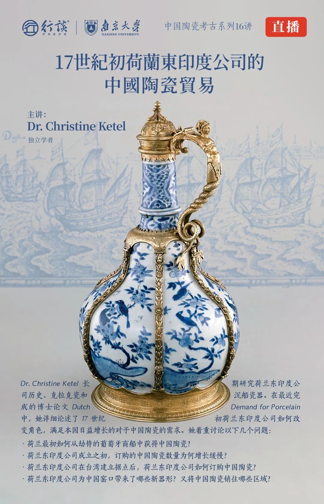 Dr. Christine Ketel长期研究荷兰东印度公司历史、克拉克瓷和沉船瓷器。在最近完成的博士论文Dutch Demand for Porcelain中,她详细论述了17世纪初荷兰东印度公司如何改变角色,满足本国日益增长的对于中国陶瓷的需求。她着重讨论以下几个问题: