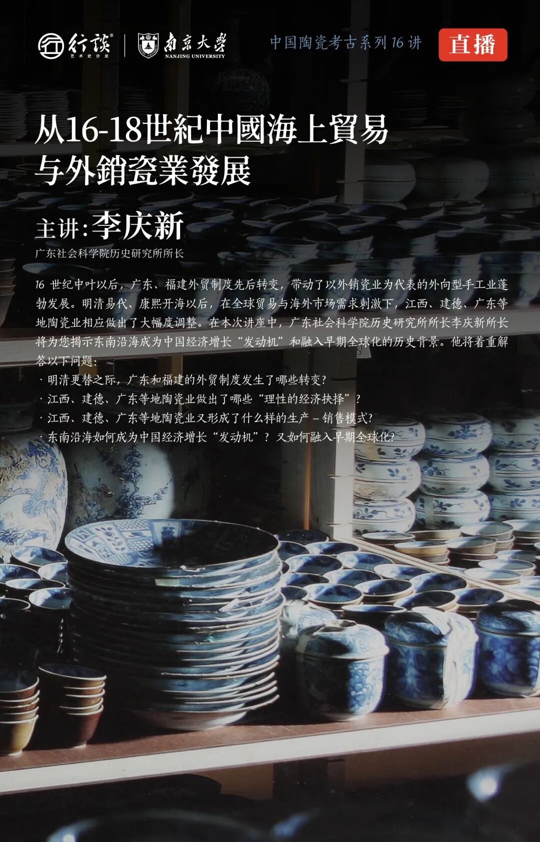 16世纪中叶以后,广东、福建外贸制度先后转变,带动了以外销瓷业为代表的外向型手工业蓬勃发展。明清易代、康熙开海以后,在全球贸易与海外市场需求刺激下,江西、建德、广东等地陶瓷业相应做出了大幅度调整。在本次讲座中,广东社会科学院历史研究所所长李庆新所长将为您揭示东南沿海成为中国经济增长“发动机”和融入早期全球化的历史背景。他将着重解答以下问题: