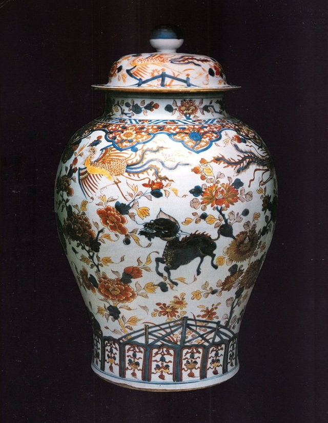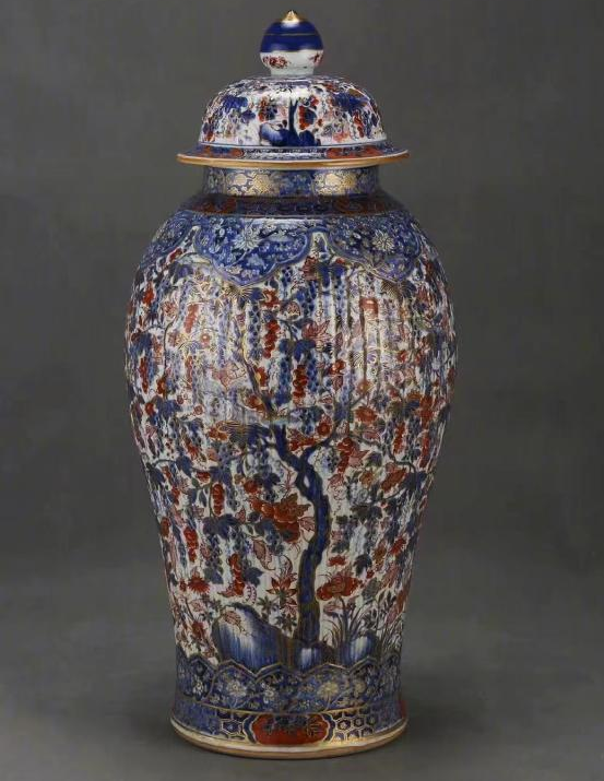 17世纪的日本,丰臣秀吉已经退出历史舞台,新的王朝属于德川家。此时德川二代将军德川秀中继续实施老爸闭关锁国的发展政策,只留长崎一处港口对外贸易。被荷兰商人闻到商机的“有田烧”,因为在长崎附近的佐贺县伊万里港装船,所以也被称为“伊万里瓷”,到明治时期制作的“有田烧”故又被称为“古伊万里”。江户时期的“有田烧”会使用红色与金色的颜料构成绮丽的图案,因此这样的装饰手法被称为“浓染付”、“金襕手”。其工艺就是在瓷器大片乳白色背景下,巧妙地利用颜色鲜明的红、青、绿、黄等色彩描绘花草动物纹样,并以染锦为主,彰显和谐高贵。这种风格的瓷器为当时西方人喜欢,所以明末清初期间,日本“伊万里瓷”垄断了东亚地区50多年的外销瓷路,直至康熙年间,大清政局稳定,社会太平了,这个重要的外贸商品才重新回到景德镇的外销瓷大军中。