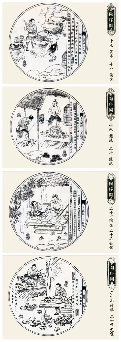 “有田烧”的制作工艺跟中国陶瓷烧制的72道工序如出一辙,也是先从矿区采取瓷石,再以人工用铁锤敲碎,用水碓舂(chong)打成粉状。淘洗除去杂质,沉淀后制成砖状的泥块,也就是俗称的“不”(dǔn)此处念dǔn。反复清洗揉捏,使泥中没有杂质且水分均匀。
