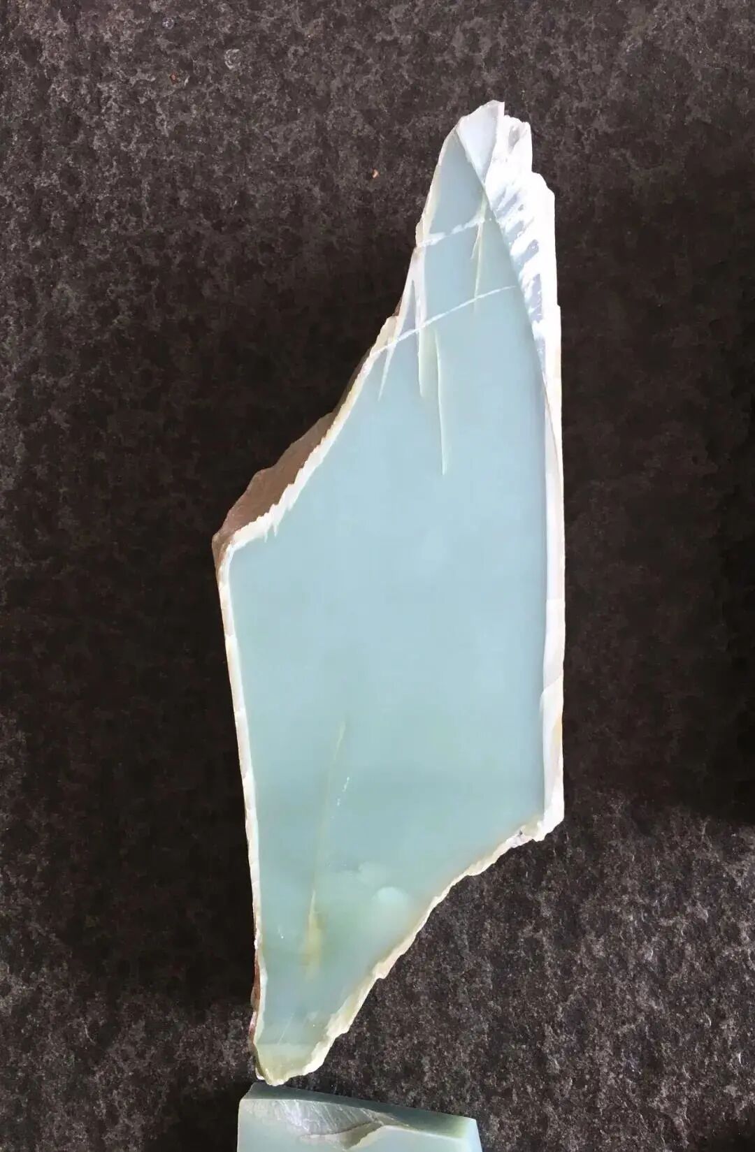 瓷蓝这种鸭蛋青料子极其少见,颜色属于青中偏蓝,带灰色调无结构,在玉质上没有水透的感觉,带一些瓷性,很像俄料的干白,但瓷蓝料是带有油性的。