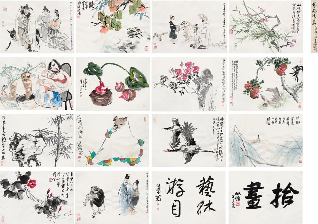 LOT 0365 谢稚柳(1910~1997)、程十发(1921~2007)、陈佩秋(1923~2020)、刘旦宅(1931~2011)等人物花鸟书画册(十六开)