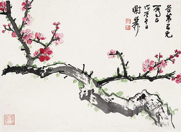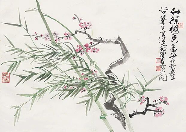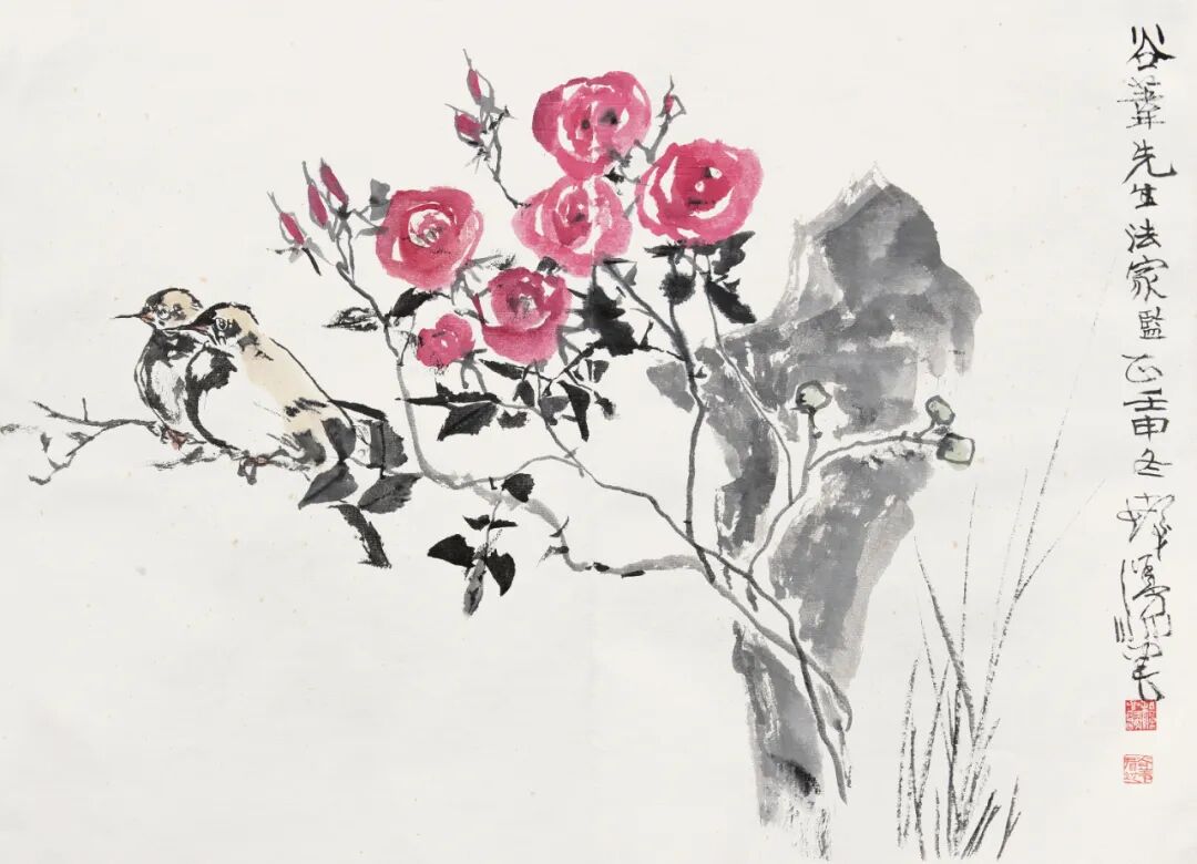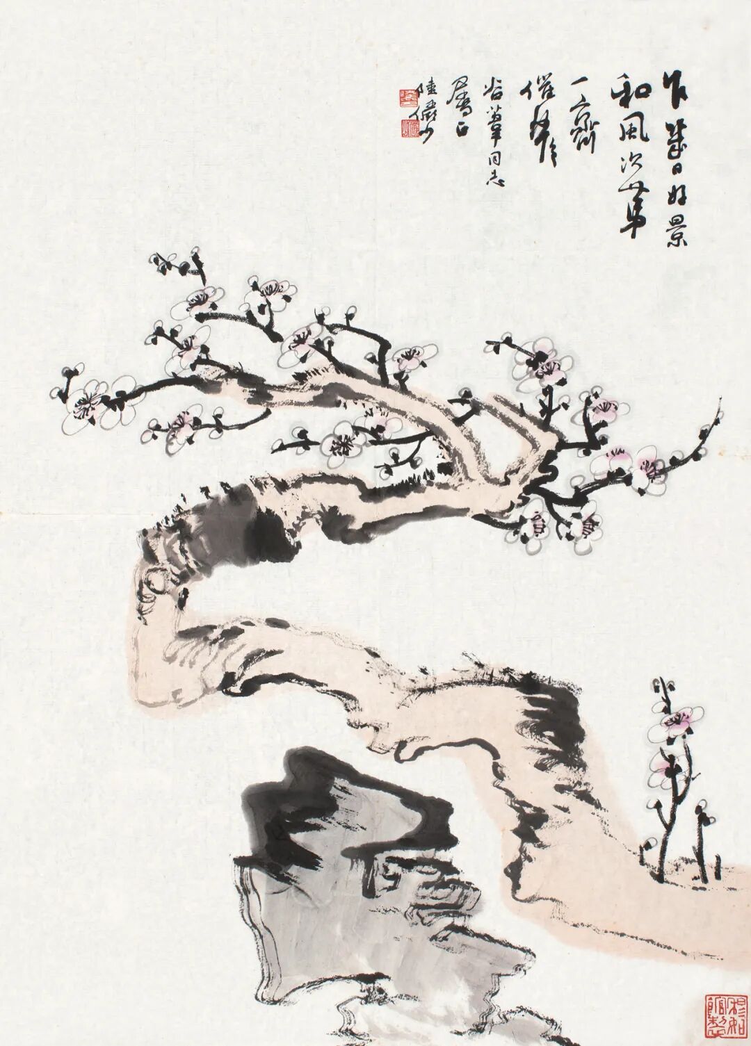 题识:乍几日,好景和风,次第一齐催发。谷苇同志属正,陆俨少。
