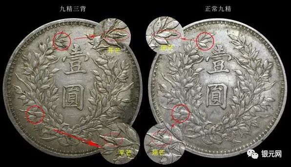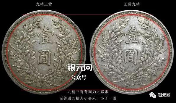 九年常见的版别有九年精发、九年精发三年背、九年中发、九年中发小嘉禾、九年粗发等等。九精三背是一个比较不错的版别,在平时玩币时容易和普通九精尤其是和九年中发相混淆,所以有必要掌握它的一些特征。