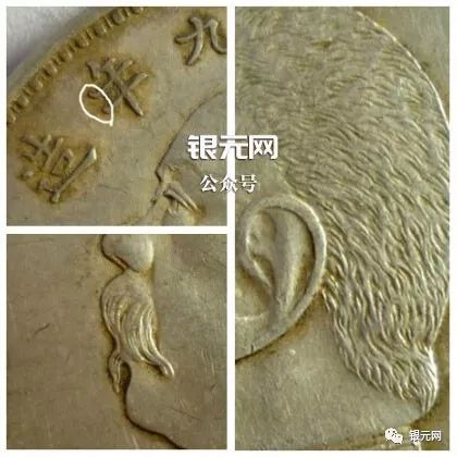 袁大头九年精发其主要特征为:整币精雕细刻,精美为大头系列之最。头发一丝丝,胡须立体感强,胡须下缕为三四缕(中发版仅有两缕,这是区分中发版精发版的简易方法),精发版的“年”字也与别的版式不同,也就是“横”的起笔都带钩,如下图: