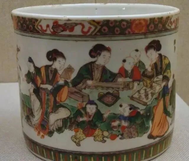 清康熙五彩“四妃十六子”图笔筒