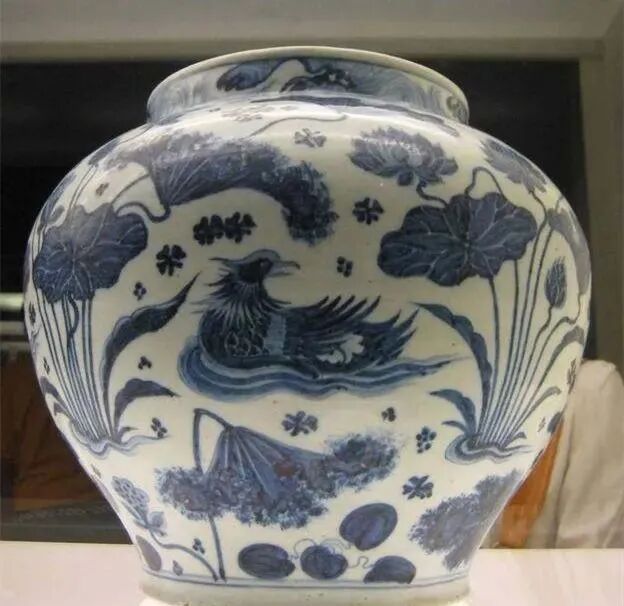 元青花莲池鸳鸯纹罐