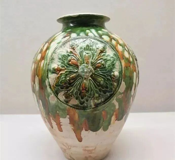 唐代三彩堆贴宝相花纹罐