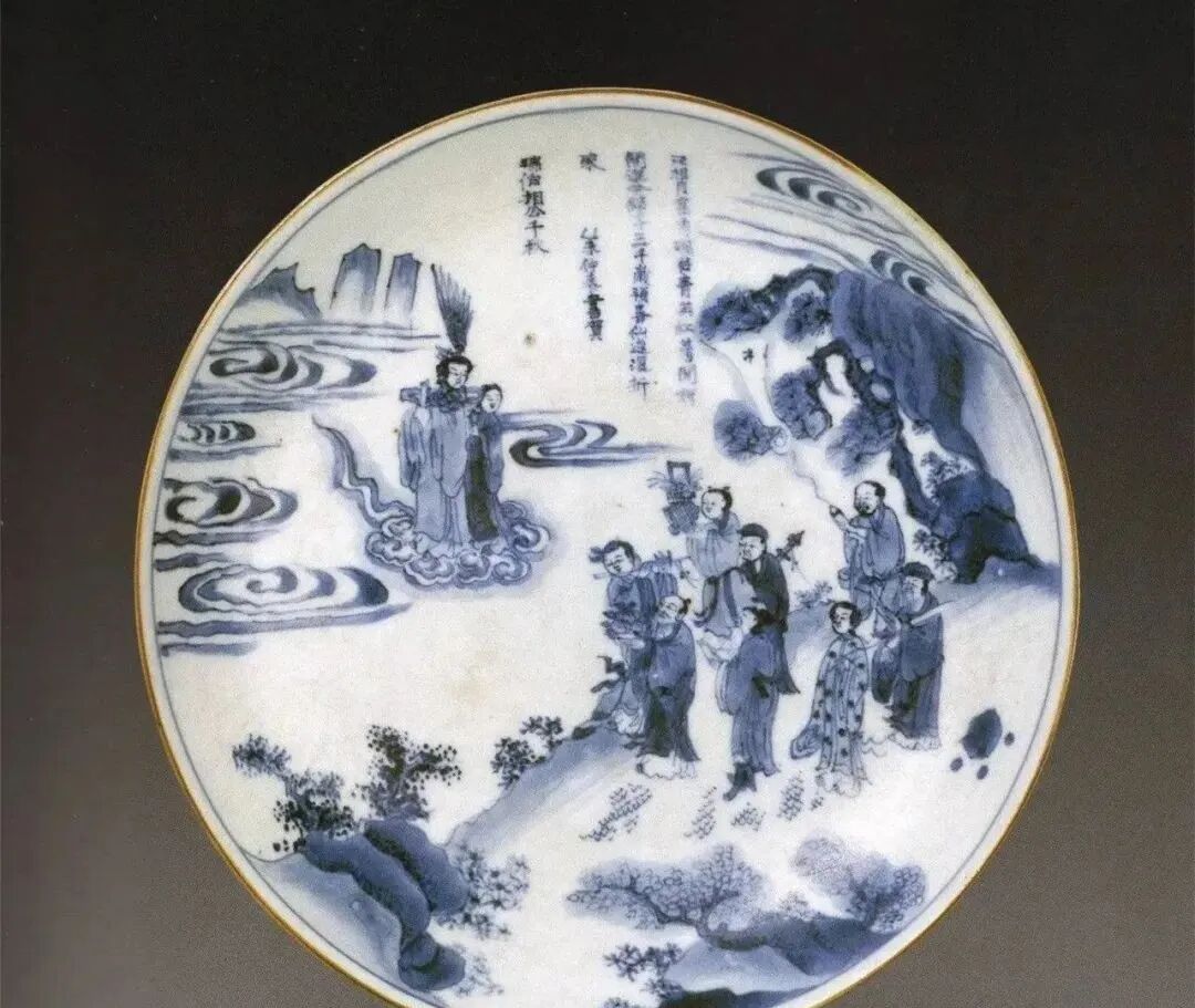 顺治 乙未年制”四字篆书款青花八仙祝寿图盘