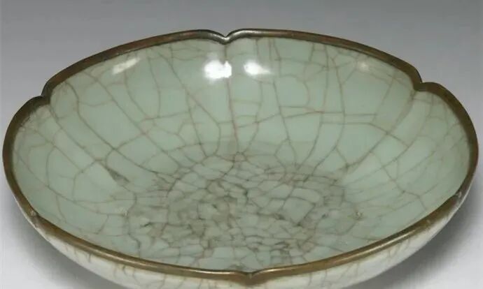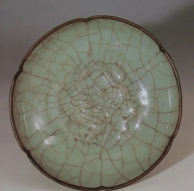 南宋 郊坛下官窑粉青葵瓣口龙纹盘