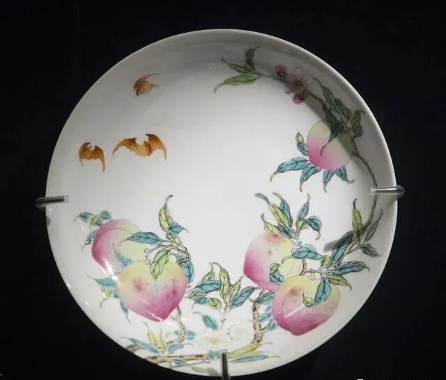 清乾隆 粉彩过枝寿桃蝙蝠纹盘