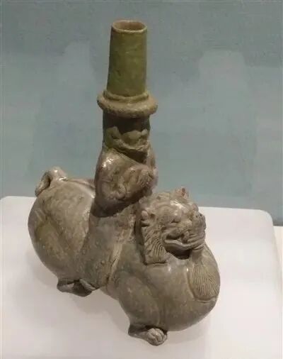 西晋青釉胡人骑狮器