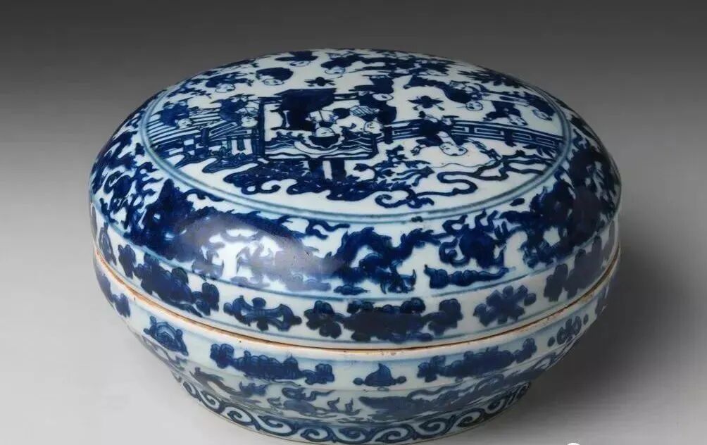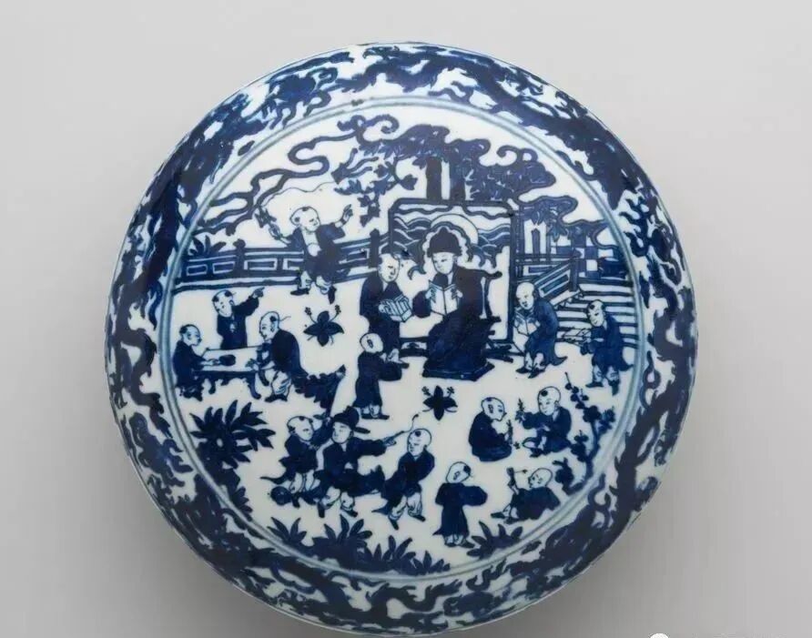 明万历 青花婴戏纹盖盒