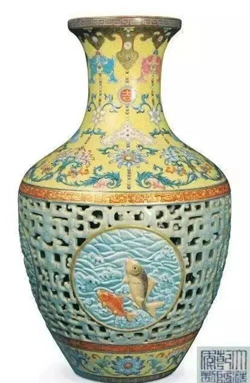 清乾隆粉彩镂空“吉庆有余”转心瓶