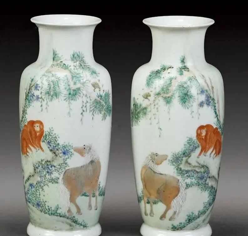 民国 粉彩马上封侯瓶
