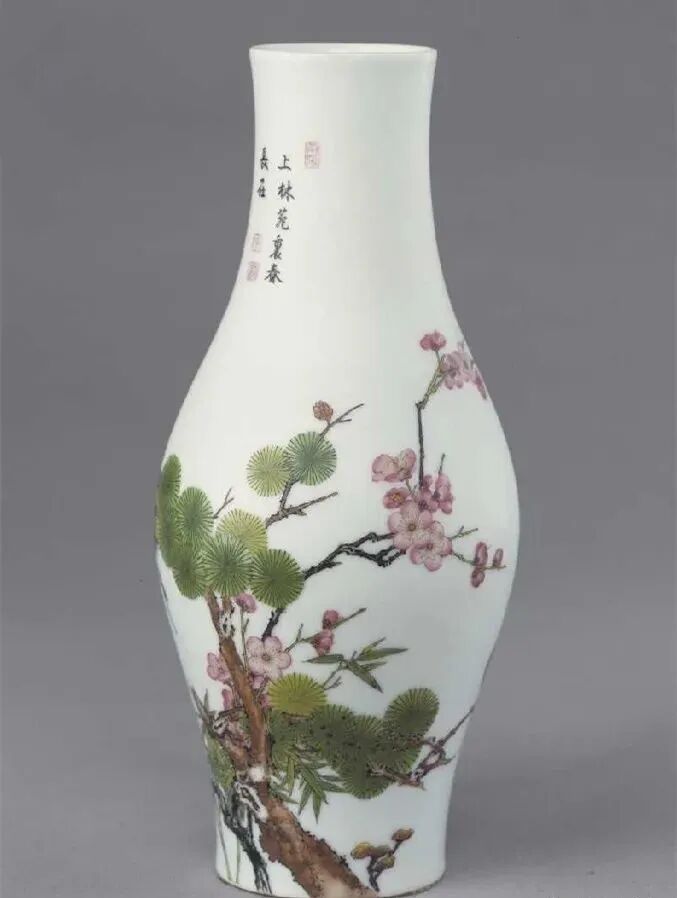 清雍正珐琅彩松竹梅三友纹橄榄瓶